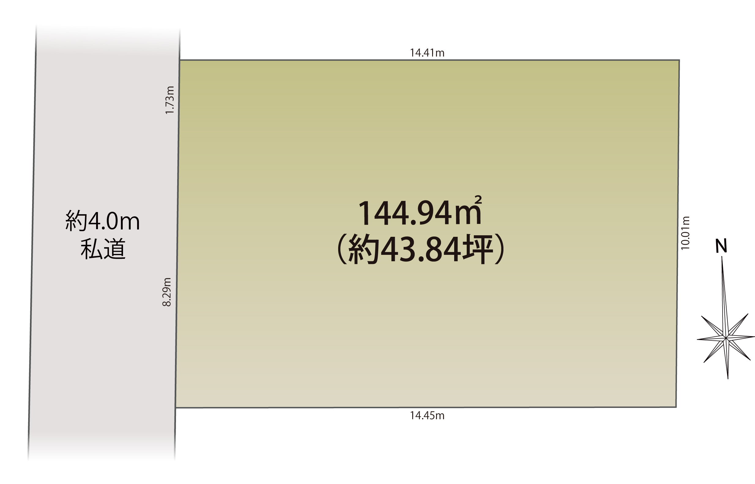 | 接道状況 | 西側約4.0m私道(建築基準法43条2項2号) |