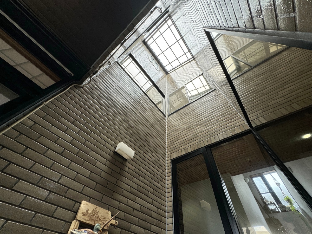 玄関を入るとお庭へと繋がる吹抜けのある中庭が迎えてくれます