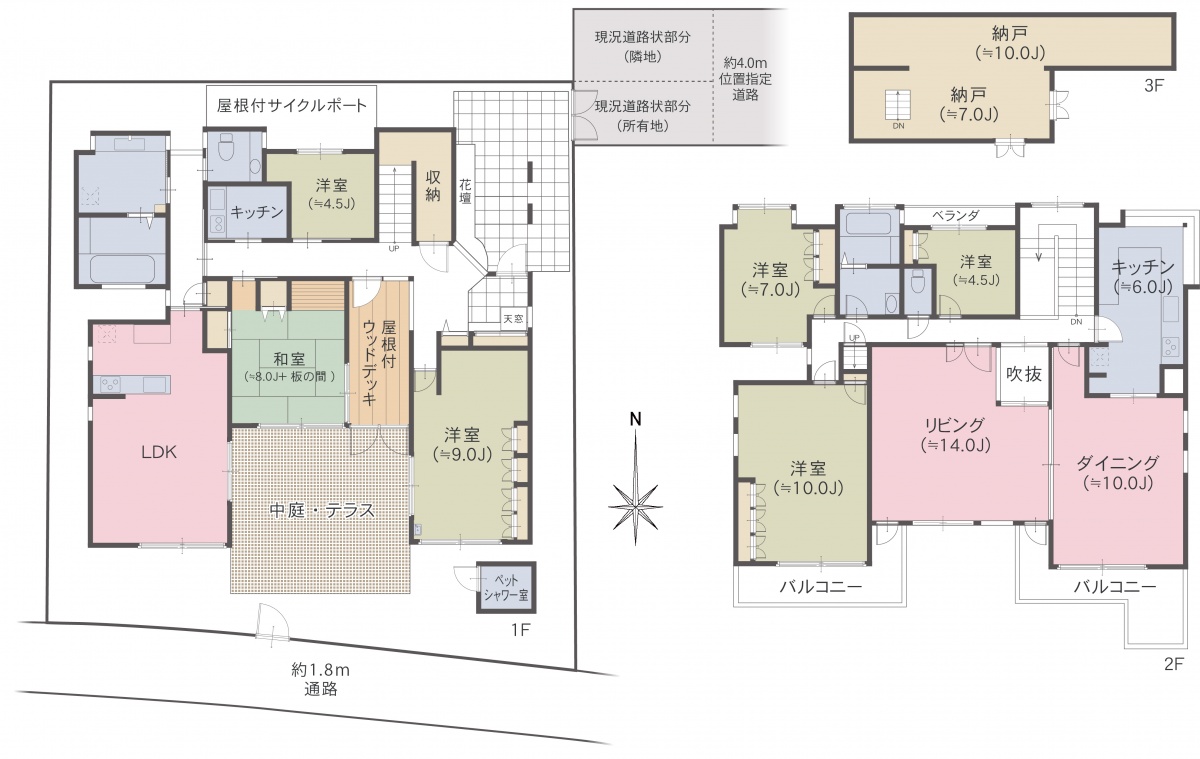 | 接道状況 | 一方(東 幅員4m 位置指定道路、南 幅員1.8m ) | ||