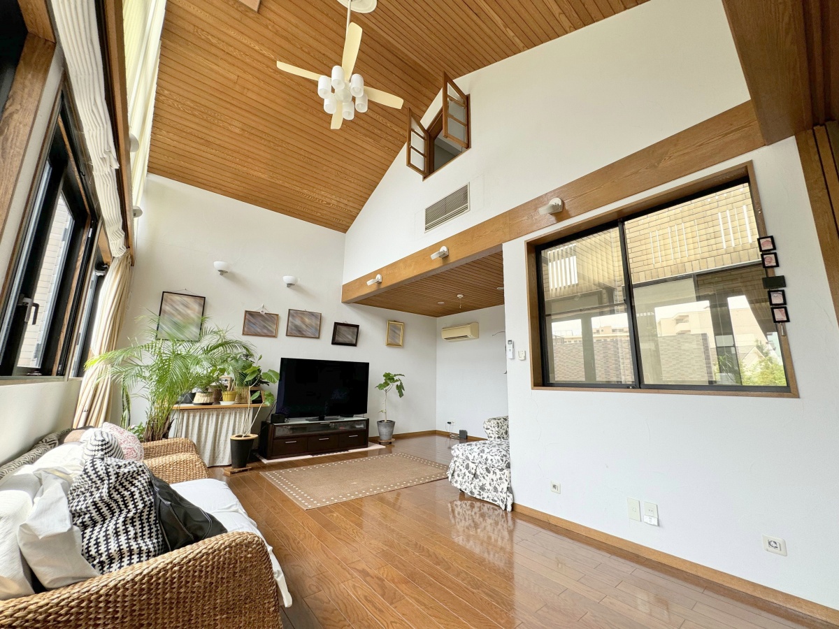 大型の吹抜けを配したLDK(30帖)には、無垢材を贅沢にあしらい、真っ白な塗り壁とのコントラストが美しく、木の温もりと開放感に溢れた上質な空間が広がります♪