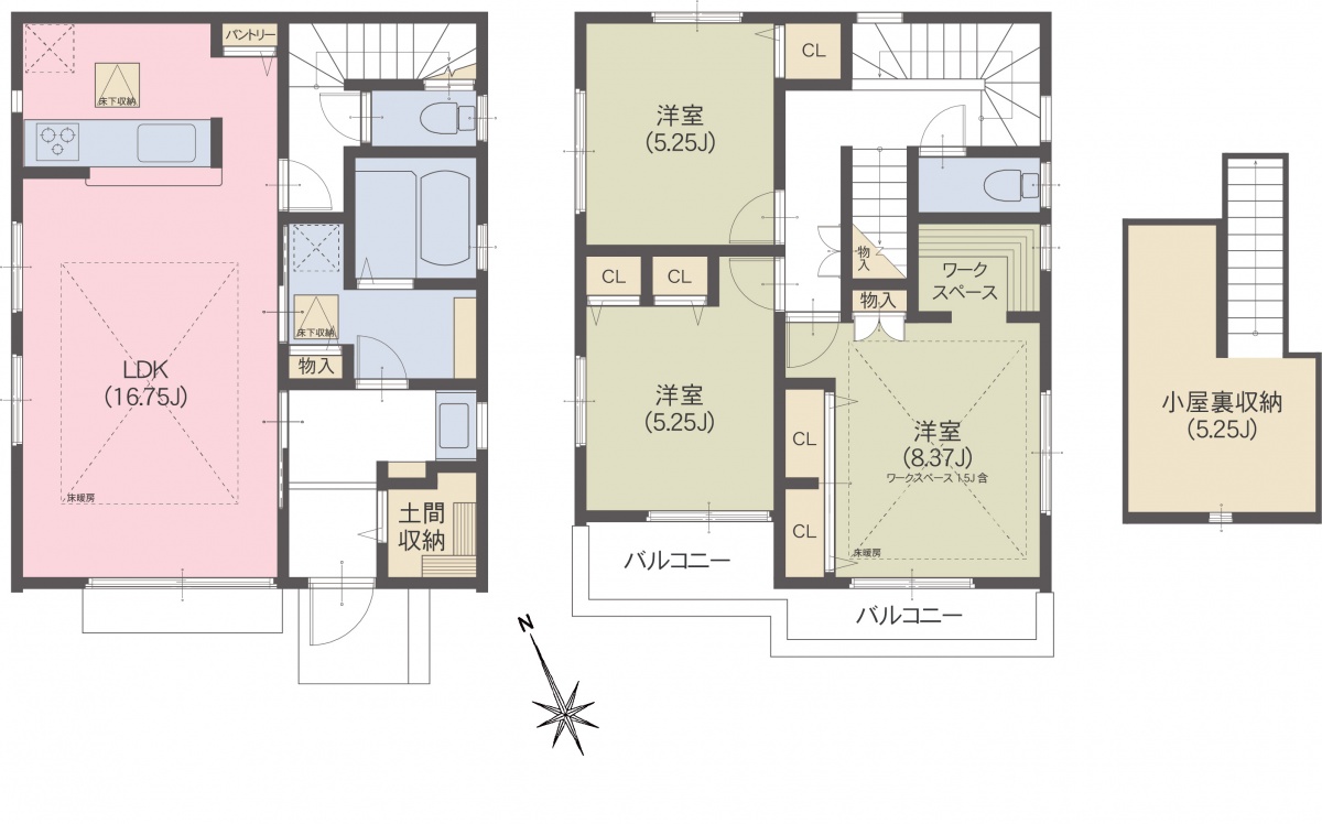 □床暖房(LD、2階約8.37帖洋室)
