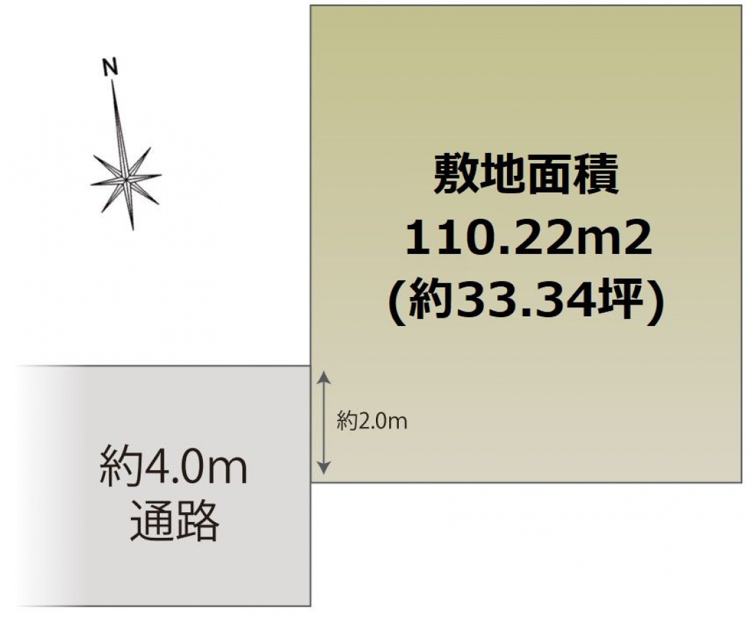 接道状況 | 一方(西 間口2m 幅員4m ) | ||