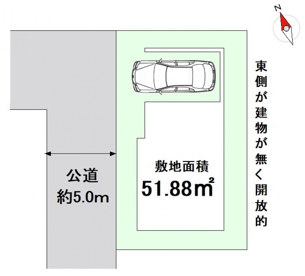 | 接道状況 | 一方(西 間口9.6m 公道 幅員5m ) | ||