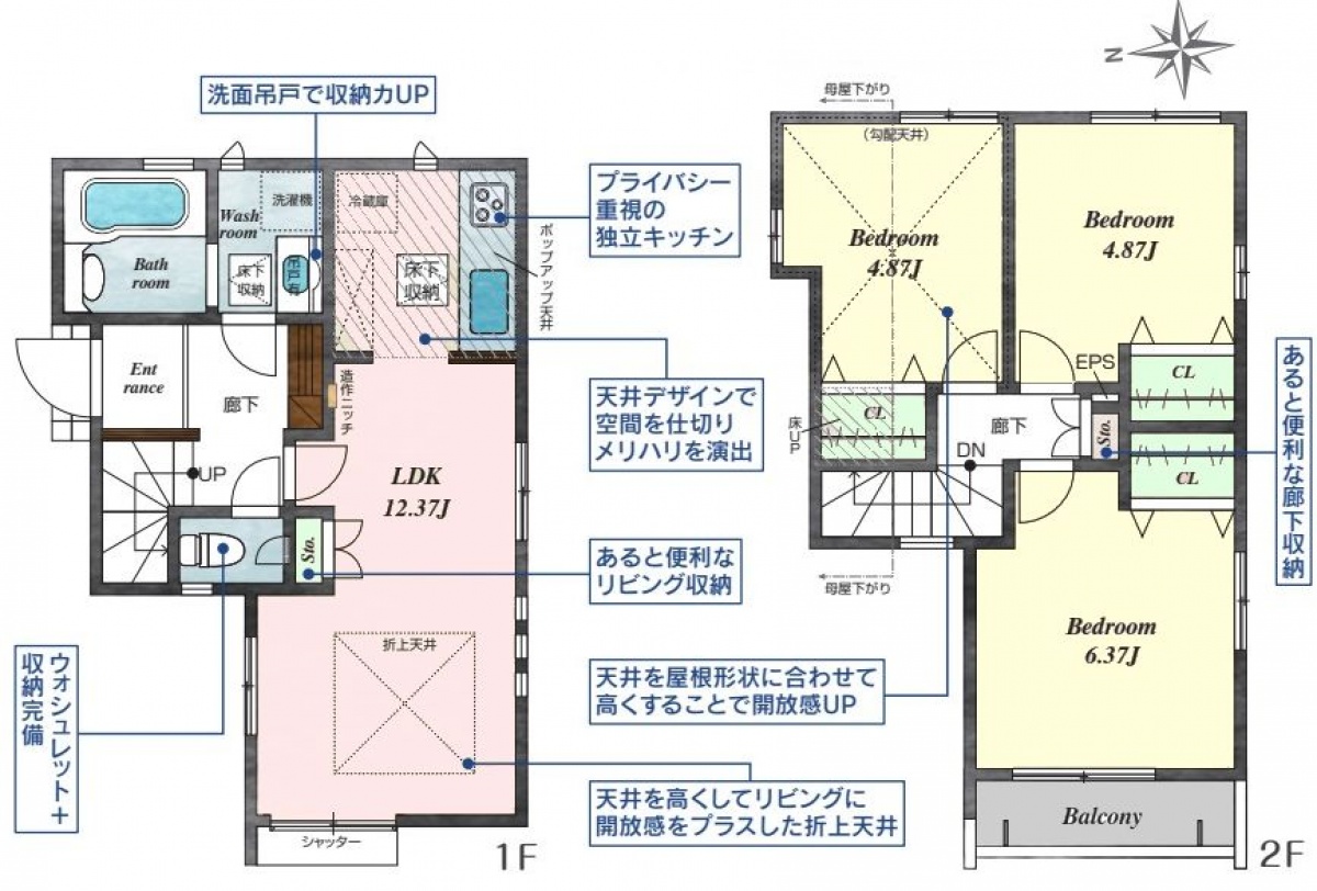 ・1階に水回りを集中した「家事楽動線」