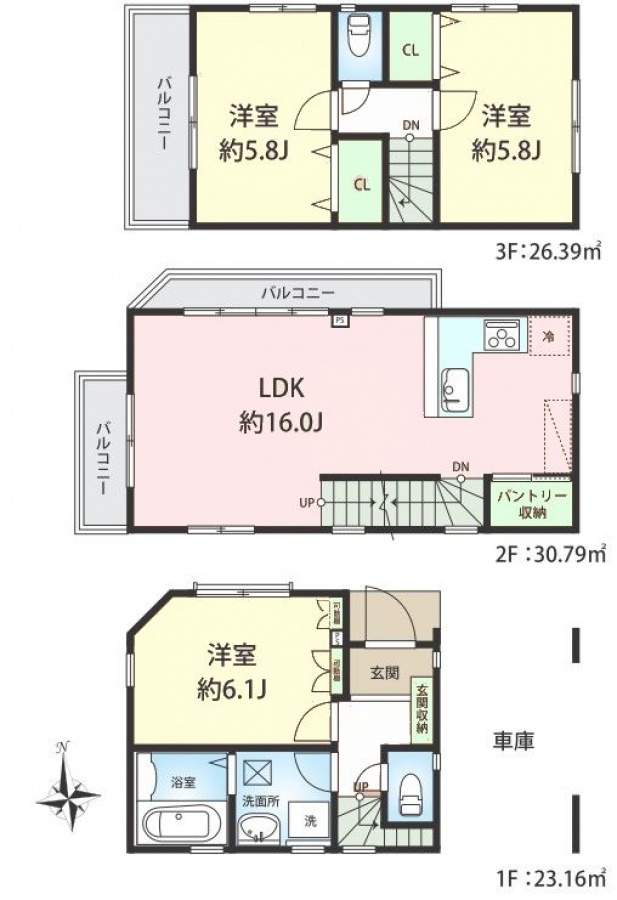 | 建物面積 | 80.34㎡ | 土地面積 | 53.79㎡ |