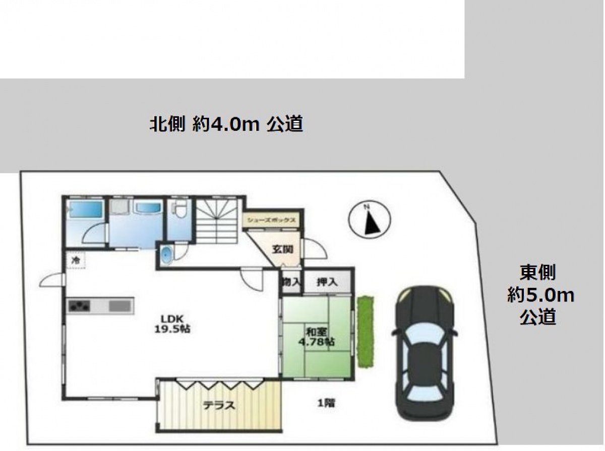 | 接道状況 | 角地(北 公道 幅員4m 、東 公道 幅員5m ) | ||