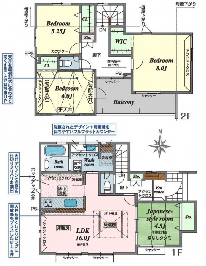 ・2階主寝室は8~9.5帖で、キングサイズのベットや家具も余裕です