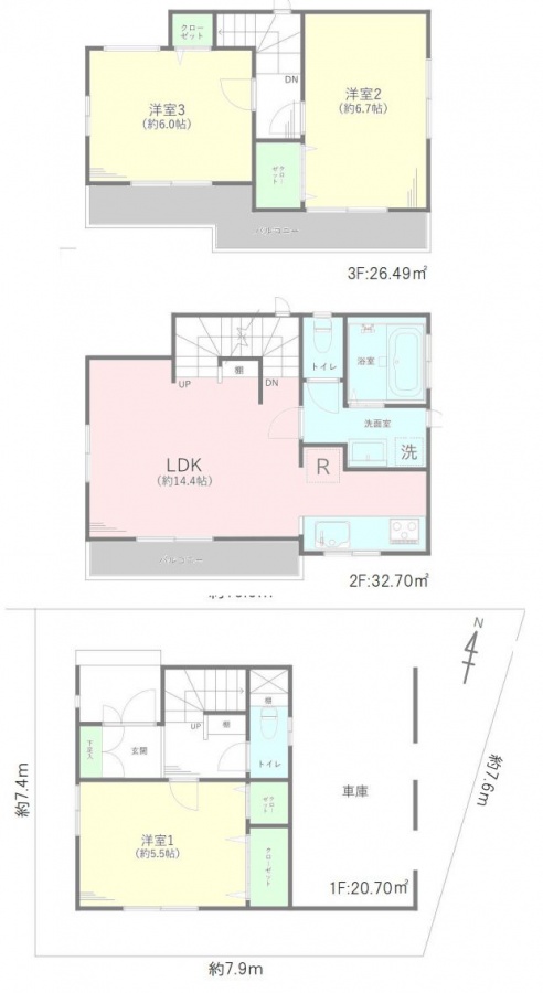 | 建物面積 | 79.89㎡ | 土地面積 | 66.67㎡ |