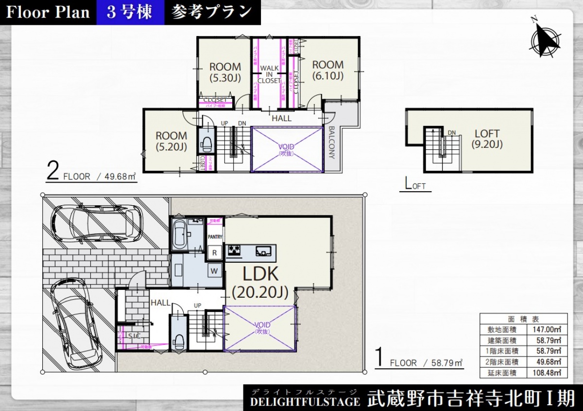 ・3区画 3LDK&WIC&SIC&パントリー&駐車場2台