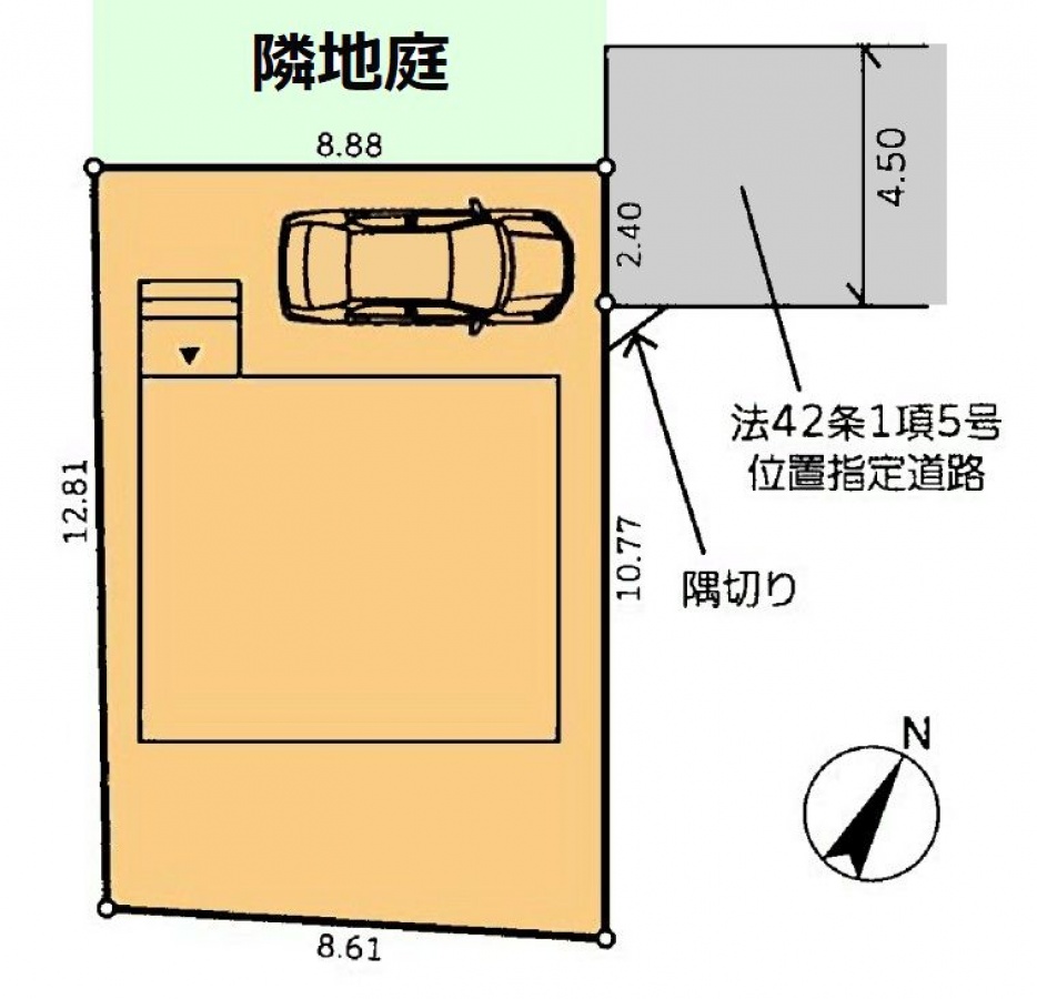 | 接道状況 | 一方(東 間口2.4m 私道 幅員4.5m 位置指定道路) | ||