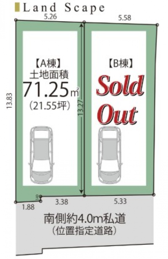 | 接道状況 | 一方(南 私道 幅員4m 位置指定道路) | ||