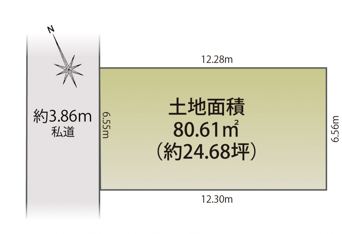 | 接道状況 | 一方(南西 間口6.5m 私道 幅員3.8m ) | ||